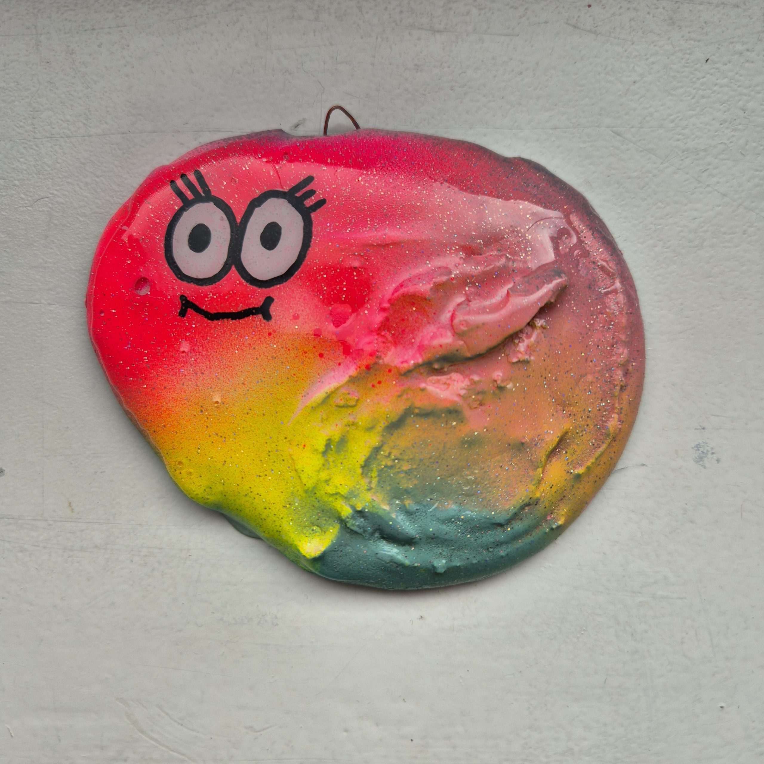 Klecksi aus Giessmasse, bemalt und mit Resin überzogen.